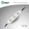 LED chip RGB module 1.Light source: 3pcs 5050 RGB SMD LEDs adopted,high brightness and light efficiency. 2.Professionally designed to be IP 65 protection rate. 3.Beaming angle:120 degree ,good color mixing effect ; No spot; No shadow. 4.Easy installation with two mountiong holes and 3M adhesive tape on the back. 5.Slim body design make it can be installed inside channel letter conveniently. 6.When controlled by RGB controller IMG-CT308-RF or IMG-DMX512-RF, it can realize many kinds of changing effects , such as multi-color jumping, 7. Application:Backlight of signage, it can be widely used in channel letter,signs,light box and etc. 8.Attention: Please do not install it in totally exposed outdoor environment. Description